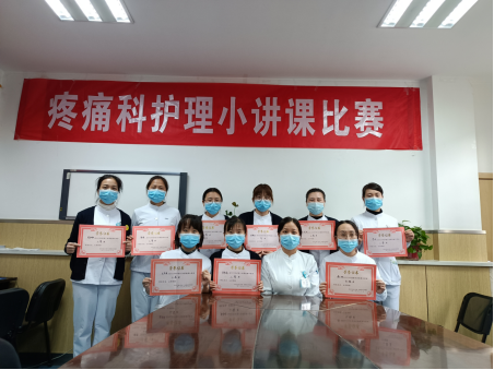 第三项:疼痛科护理青年护理教师比赛:临床带教是护理教学的重要组成部分,为了响应医院以及护理部的号召,提高疼痛科护理人员教学水平和带教能力,我科九名护士积极报名参加此次活动,本次比赛由护士长闫芍药担任评委,比赛采用8分钟计时制,在规定时间内选手完成教学内容授课,各位选手精神饱满,激情澎湃,通过精美的PPT和精彩讲授来展现着自己的授课风采,她们关注学生对疼痛管理,皮肤护理,颈椎病的预防等等知识的掌握,以及护理实际操作中拍背咳痰,芬太尼透皮贴剂,肩周炎活动锻炼的护理要点,大家选题丰富,贴近临床,经过1个小时的激烈角逐,最终评出一等奖2名,二等奖3名,三等奖4名。比赛结束后闫芍药护士长给予了每位选手详细点评,把比赛中的亮点与不足进行了分析和指导,希望每个人在今后的教学中能够不断改进教学方法,重点突出,完善教学内容,在授课时注重授课技巧,在临床带教方面取得更大的进步,培养学生理论联系实际的临床思维的同时,提高护理人员的临床教学质量,从而更好的为患者服务。