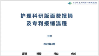 3月21日,王珍护士为大家详细讲解了《护理科研版面费报销及专利报销流程》,对报销范围、报销流程、报销资料进行了梳理,对需要关注的要点进行了重点强调。详尽、明了的流程图让大家一目了然,帮助大家在今后论文报销方面少走弯路。