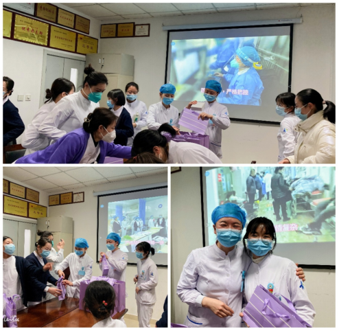正是有了各位老师的支持与配合,才使得急诊工作如常进行。为表达对30名支援老师的感激之情,于2022年2月8日,在急诊科会议室,举办了简单的欢送会,在会上,宋烨护士长带着大家回顾这两星期的工作点滴,李敏玲护士长再次向30位支援老师表示由衷的感谢和崇高的敬意,感谢她们的理解、支持与付出。她们是最可爱的人,也是最可敬的人!在会后也为各位老师送去了新春的礼物。愿我科全体护理人员的万般心意化作一片丝巾,永远温暖着她们!