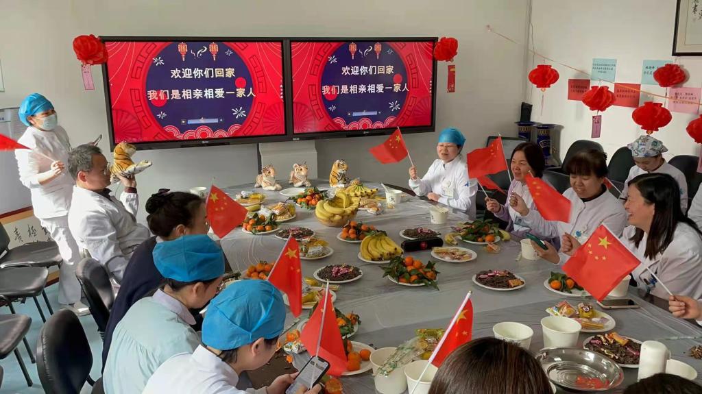 英雄凯旋情谊暖暖,共聚神内团团圆圆。2022年2月15日元宵节中午,我院神经内科总院区、东院区及在隔离酒店的抗疫英雄们连线,线下线上共庆元宵佳节。