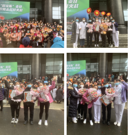 随着医疗队员下车,人群沸腾了,大家热烈鼓掌向队员们表达着敬意。英雄凯旋,欢迎回家。去时千山远,归来万里晴,每个人都为英雄的平安归院激动不已。所有凯旋归来的医疗及护理队员们也格外欣喜,圆满完成任务后,大家眉开眼笑,支援无悔,满怀欣喜。医院为他们举行了简短最美逆行者回家仪式。 血管外科刘建林主任、周围血管科田红燕主任、周红艳护士长和孙静岚副护士长代表全体科室人员为参加新冠抗疫的李延医生、吴乐护理师和段思凡护士献上了美丽的鲜花。周红艳护士长说:“在这非常时期,你们舍小家、为大家,不顾个人安危,奋勇向前,不负重托,你们是抗疫前线的英雄!欢迎你们平安归来!” 在危险与困难面前,他们选择逆行而上、义无反顾,他们是最美丽的逆行者。经过短暂的休整、隔离过后,他们将会以最好的状态回归工作岗位,以更加饱满的热情投入到接下来的工作中。