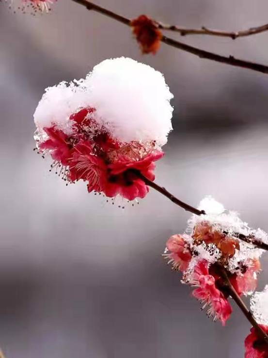 一段好春藏不住,红梅雪后枝头俏;雪后的龙阳沟红梅初放,娇艳欲滴,景色宜人,阵阵馨香沁人心脾,呈现出一派欣欣然的初春景象。