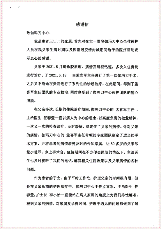 感谢,伽马刀中心的医护人员
