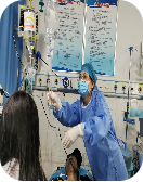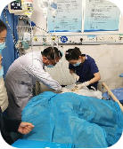 2021年12月4日,在杜俊凯主任、李敏玲总护士长、宋晔护士长的带领下,一行7人驱车前往兴平市人民医院进行调研交流。兴平市人民医院创伤救治工作开展多年,积累了丰富的经验。在医院副院长史亚峰、急诊科主任陈烨等领导的引导下进入创伤中心参观交流,创伤复苏单元配备多功能监护仪、触屏式输液泵、创伤专用抢救柜、创伤专用液体柜、无影灯等等,可以满足大部分患者伤口的处理以及部分一二级创伤患者的手术。正当大家交谈之际,120送来一位多发伤患者,患者系被汽车撞伤左侧胸部,循环、呼吸不稳定,休克状态,血压极低,而患者外周2处留置针均有外渗,无法继续使用,此时,高效的液体复苏成为摆在患者面前的第一关;作为技术交流的主体,在杜主任的组织下,我院创伤小组迅速投入抢救状态。外周血管塌陷,穿刺及其困难,杜主任指示马丽医师行右颈部深静脉置管,只见马医生动作娴熟,准备、定位、消毒、穿刺、固定,一通操作行云流水,仅仅5分钟,右颈部CVC置管成功,患者的生命通道瞬间被打开,在王雪虹护理师的快速配合下,晶体、胶体、止血药物、血浆、悬浮红细胞共计4路液体源源不断快速输注,8分钟过去了,患者血压有效回升。此时监护显示患者氧饱和度85%,经验告诉我们,患者肺脏受损,而随后的B超检查也证实了我们的判断:左侧血胸。杜主任再次指示高亚洲主治医生给予左胸穿刺引流,随着引流管的插入,大约300ml鲜红色血液快速涌入引流瓶内。如此迅猛的出血,杜主任考虑有大动脉的损伤,稳定生命体征,即刻行检查,明确血管有无破损。约20分钟后,患者CTA检查结果印证了我们的猜想:主动脉弓血肿,伴出血。作为市级医院,还缺乏进一步的救治能,与家属沟通后,协助患者转院进一步治疗。此时,患者的初步救治告一段落,一附院创伤团队敏锐的洞察力,及时的判断,准确的处置,令在场的医务人员啧啧称赞。