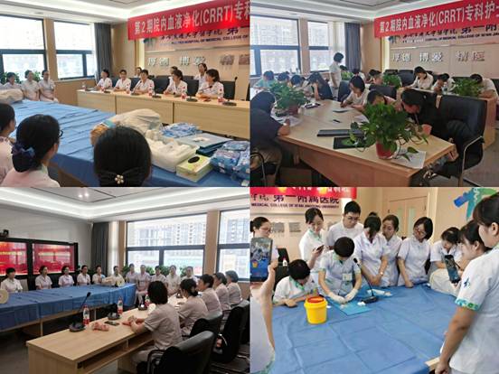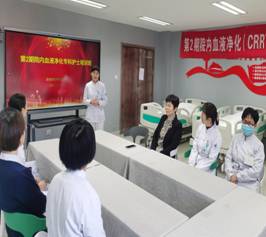 2021年6月7日,血液净化护理专业组在护理部的支持和指导下,举办第2期院内血液净化(CRRT)专科护士培训班,院内相关科室积极参与,来自心外ICU、呼吸RCU、肝胆ICU、感染科、肾内科、儿科、肾移植16名学员参加本次培训班。培训内容紧密结合血液净化标准操作规程(2020版)、临床质量督导现状、上期培训存在问题,重点突出进行授课和临床实操。包括线下理论培训一周,临床实践操作两周(透析一周,CRRT一周)。所有学员均热情饱满,迅速投入培训学习当中,进入高效学习状态。