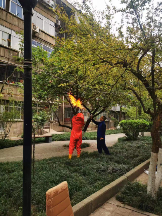日前,保卫部接家属区住户报警称其家中空调外机处有大量胡蜂出现,接报后,值班人员迅速到场勘查,分析由于该住户室外空调管道未进行封堵,胡蜂借孔筑巢,后联合驻地消防救援站对该蜂巢进行去除,并对管道进行封堵。4月11日下午,我部人员在家属区巡查发现,漫步道旁一棵樱花树上滋生胡蜂窝一个,外形直径约40公分,为防止出现伤人事件,我部立即联合消防救援站,在做好现场警戒及防护下,摘除该处胡蜂窝,确保了住户安全。