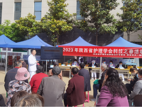 静脉治疗作为一种临床最常见的治疗方法广泛应用于医疗工作中,为积极响应陕西省科协第三十一届“科技之春”宣传月活动,提高人民群众的静脉输液治疗相关医学知识,展示护理工作者的展业风采,西安交通大学第一附属医院静脉治疗专业组于4月6日上午10:00-12:00在门诊南广场开展静脉治疗系列科普活动。参与活动的成员有西安交通大学第一附属医院外周静脉治疗组组长杨勤玲护士长、安全用药组组长张亚婷护士长以及我院静脉治疗组核心成员、静疗专科护士。