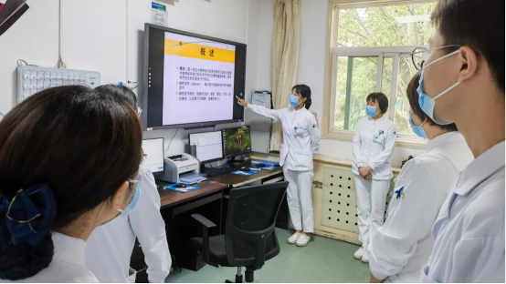 随着优质护理服务的深入开展,不断提升护理水平和质量更是护士继续教育工作中的重中之重。近期科室收治了1例纵膈肿瘤合并癫痫的患者,为提高护理质量,保证患者安全,2023年4月14日,胸外二病区全体护理人员在康莉护士长的组织下,利用晨交班时间,由闫海琼护理师对癫痫患者护理的相关知识进行了床旁培训,全体护士、规培护士及护理实习生参加。