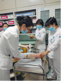 首先吕秀娜给大家演示了标准操作流程,边操作边讲解注意事项;然后静疗组长李晶进行点评,强调操作中需要关注的细节;最后护士长康莉进行总结,从前期评估到消毒范围、消毒方法,再到固定手法都做了具体强调,要求大家严格无菌操作、体现人文关怀,希望大家接下来认真练习,熟记操作流程,熟练操作手法,并应用于临床工作中。