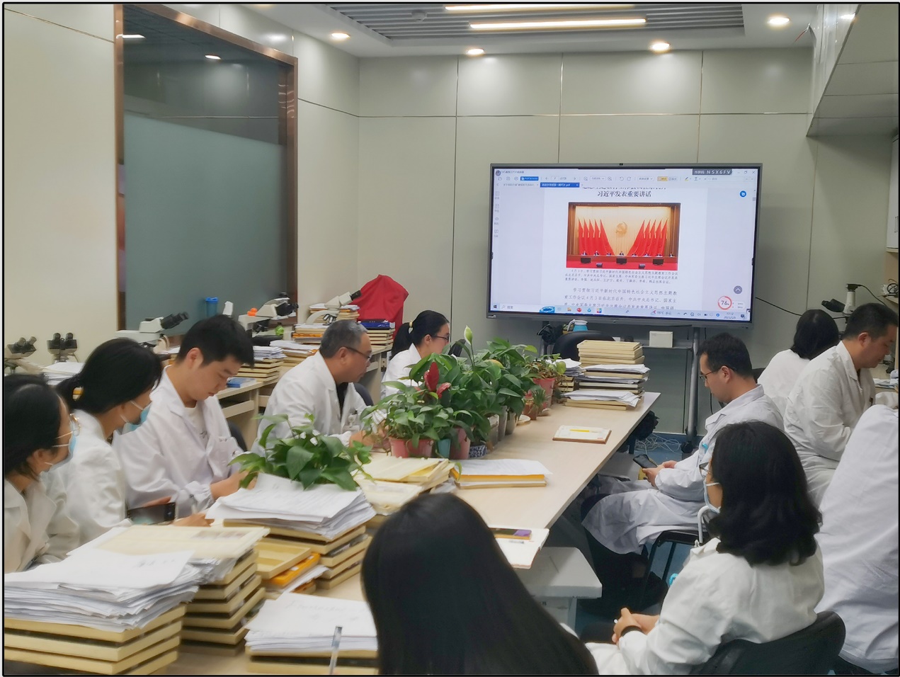 5月9日下午,病理科党支部召开了“建国医支部率先 优服务党员争先”的专题组织生活会,会议由张冠军书记主持,全体党员同志和入党积极分子参加。