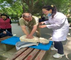 宣讲队员张晓玲以民众生活中的健康需求开始,展示了真实的抢救场景,采用边讲解边操作的方法,将徒手心肺复苏术直观展示出来,详细讲解每一步的操作方法和技巧,告知操作原理,耳目一新的宣讲方式使在场的每位群众都受益匪浅,大大激发了他们的学习兴趣,主动跟随宣讲队学习胸外按压的方法,宣讲队成员赵亚锋、杜亚庆、赵艳也耐心指导、帮助,从判断、呼救、胸外按压的速度、深度、人工通气方法等都做了详细指导,并告知他们拨打急救电话的方法、注意事项,使他们在学习到有效的胸外按压的同时也掌握了急救联络方法。