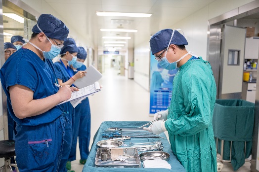 赛场上的新秀们,从环境评估,物品准备都一丝不苟,紧接着按照日常流程开始核对病人,书写白板,打包,洗手,穿衣,摆台,清点检查物品……虽然这样的工作大家每天都要做上很多遍,但在赛场上,却又在争先恐后地表现出自己更规范,更娴熟,更技高一筹,因此青春的脸上多了一份斗志,一份自信,一份碾压对手胜券在握的雄心壮志。