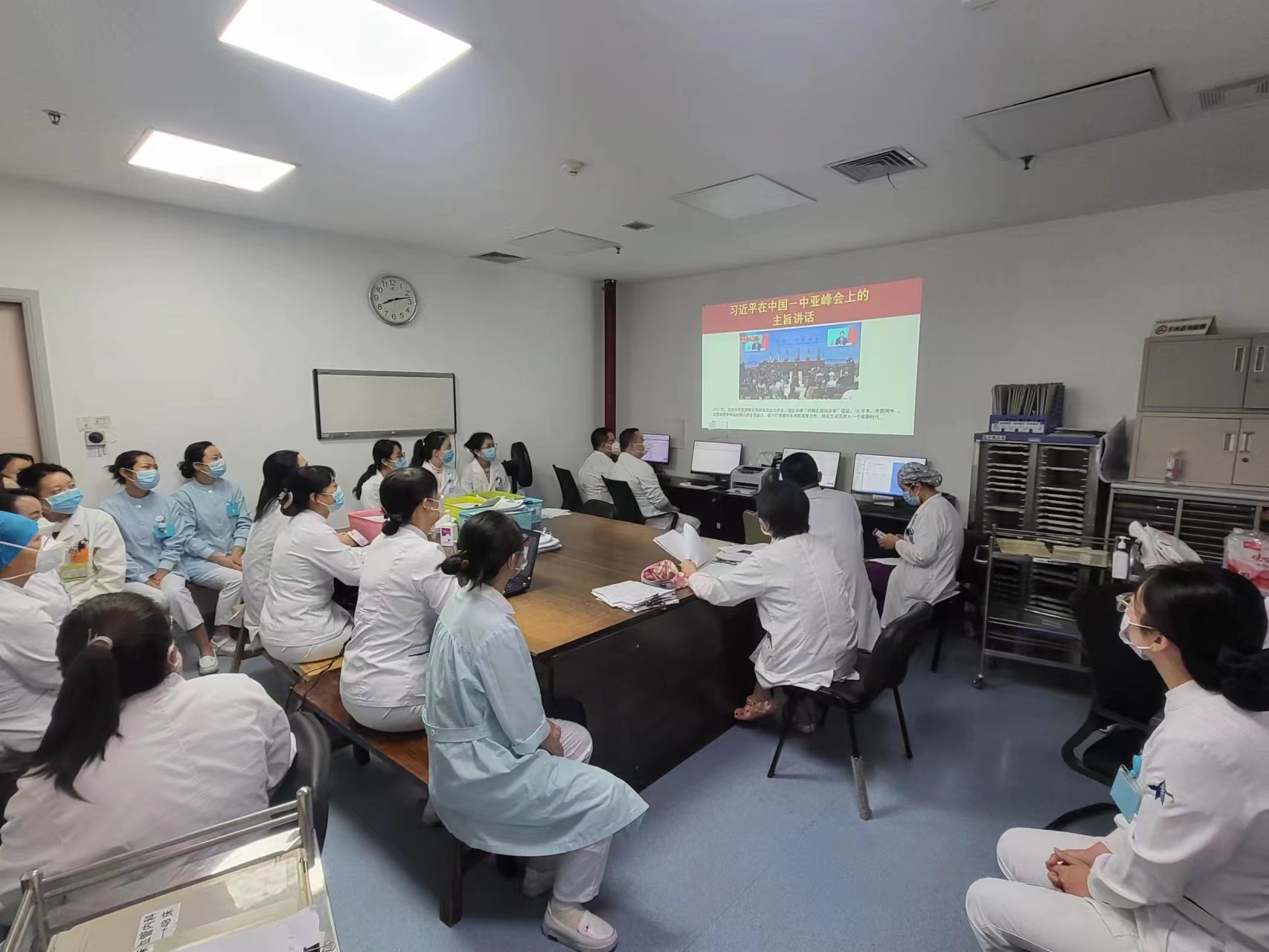 刘盈盈护士长带领大家学习了第四期周周学思想内容,本期主要内容是习近平总书记在中国-中亚峰会上的主旨讲话。