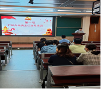 第三项,行风办韩真老师给大家进行专题培训,联建强化服务意识,提升服务品质。韩真老师通过窗口发生的三件真实案例由此引出本次培训的内容:一条黄金法则、两点注意、三个不要、四项原则。在服务患者时,应当正向引发,使用文明语言与患者进行交流;少辩对错,尽最大可能为患者办理好业务并解决问题。面对患者时不要带情绪,不要带偏见、不要带臆断。通过换位、详尽、关心和结果原则完成窗口工作。最后通过盲人提灯的小故事告诉大家服务他人的同时也是成就了自己。
