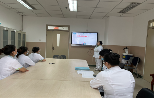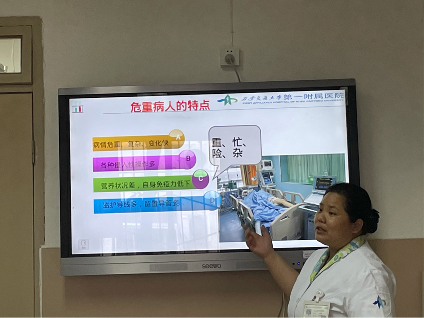 随着传染病区域医疗中心的持续推进,科室接收及救治危重症患者的比例持续上涨,为使年轻护士在应对危重症患者护理时能够做到心中有数,感染科三级护士尚琳娜为0级及1级护士进行了每月一次的理论授课,授课内容为危重病人的护理。
