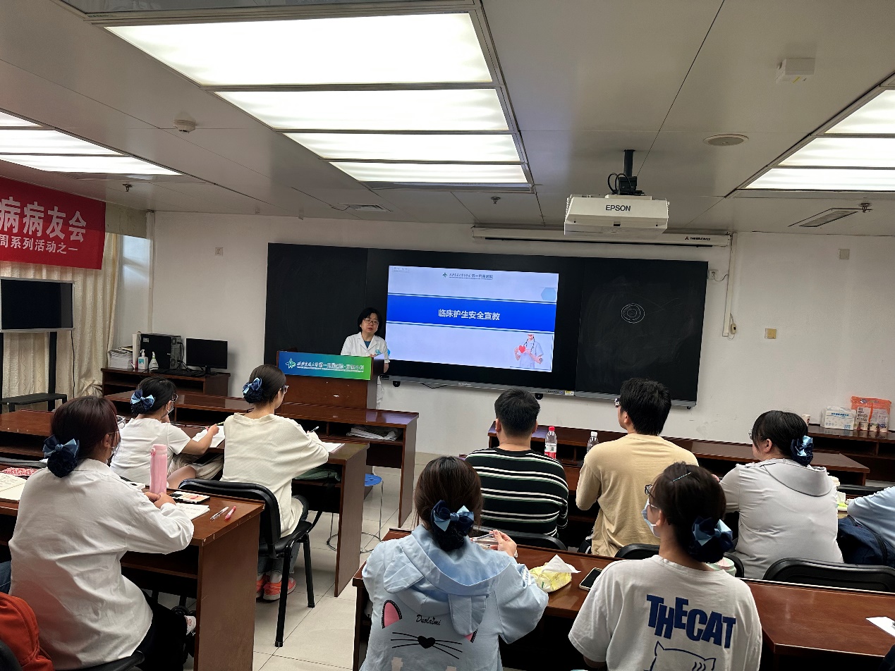 本次教学内容由肝胆外科总带教郑倩倩老师讲授,教学活动由四部分内容组成:肝胆外科护生入科宣教,肝胆外科总论学习,临床实习生入科安全宣教,随堂考。郑老师详细认真地为同学们讲解了相关内容,肝胆外科作为学生们进入临床实践的第一个科室,对未来充满了期许。欢迎仪式结束后,实习生与带教老师一起进入各自病区开始学习。
