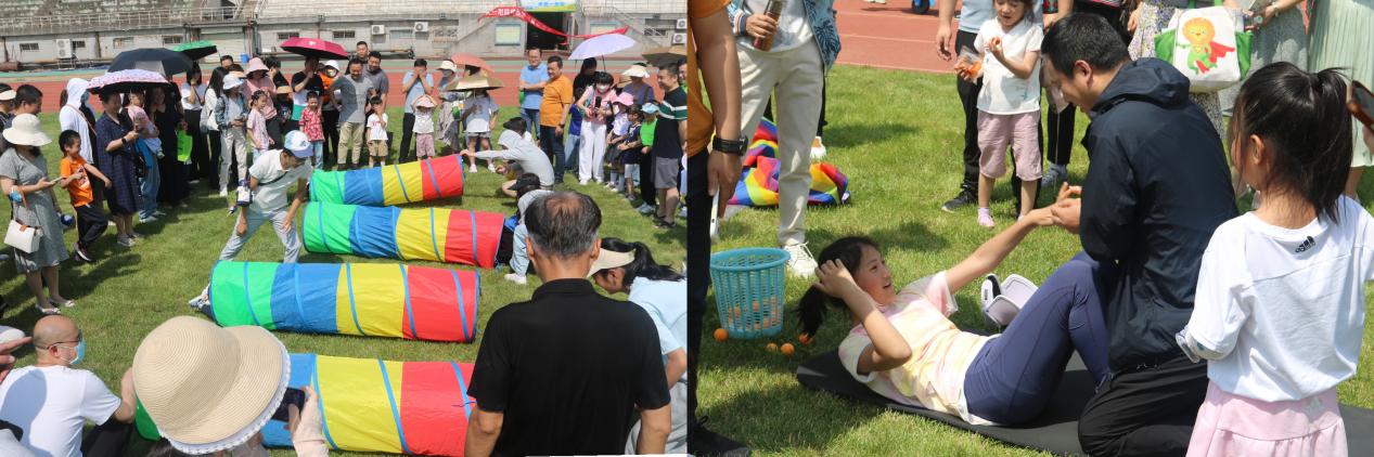 在现场工作人员的精心策划和组织下,6个充满童趣和挑战的项目有条不紊地展开。小童组的爬爬乐、小推车、贴贴贴、车轮滚滚如火如荼的进行,考验家长的体力与家庭默契程度;大童组的车轮滚滚、仰卧起坐、袋鼠跳,考验亲子团队的密切配合与默契协作,小朋友和家长们使出浑身解数,以保证能够顺利完成比赛。活动现场气氛热烈,引得大家掌声不断,笑声连连。拉拉队的家长也为场上的运动员们助威鼓劲,呐喊声与掌声此起彼伏,现场“乐翻天”!孩子们满头大汗,稚嫩的脸上洋溢着灿烂的笑容,欢乐与热情荡漾在整个操场上。