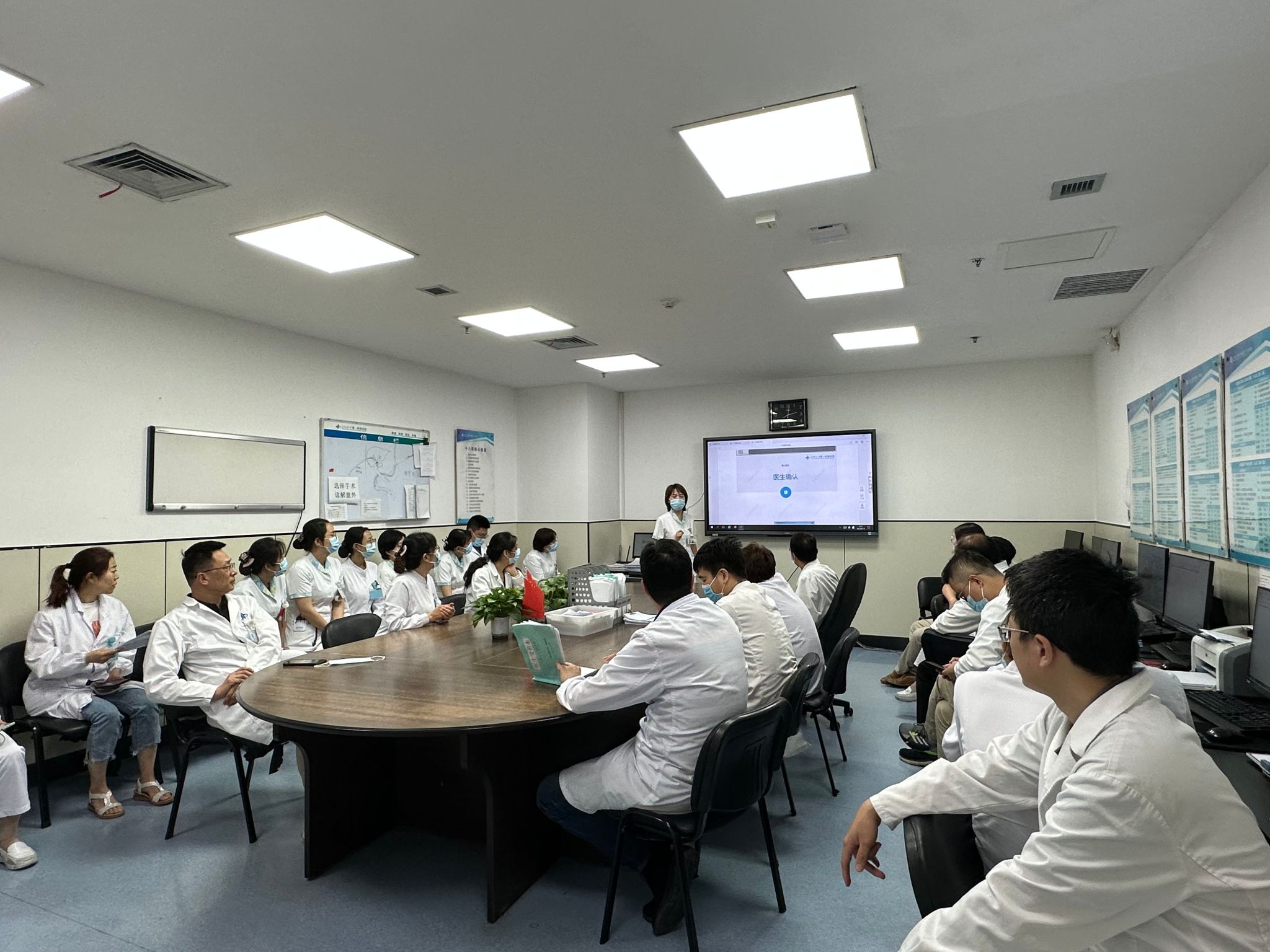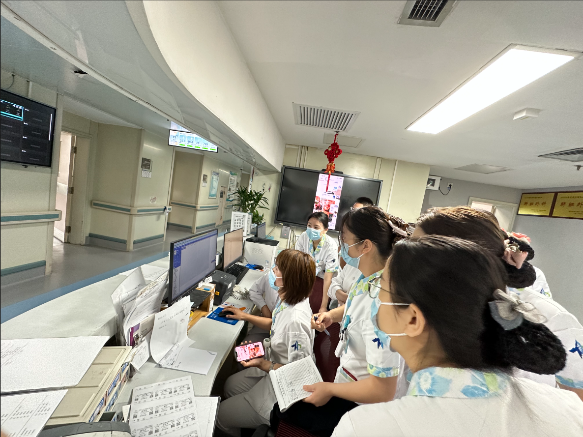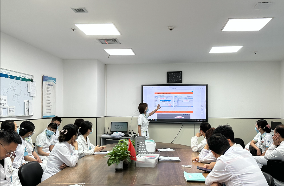 2023年6月13日医护晨交班结束,在13楼医生办公室,由陈超男护理师详细讲述了新系统VTE评估流程,总共分为三部分:首先第一部分:引用VTE至入院通知单,详细介绍了入院患者24小时评估方法及流程;第二部分:护士初评,主要涉及患者入院超过一周复评、病情变化、手术前、手术后及出院前评估方法,第三部分:医生确认,入院患者VTE由护士负责首评,医生负责复评确认,高危患者排除出血风险,根据患者实际情况,采取机械预防、药物预防。培训最后,大家就新系统VTE评估方法中遇到的疑难问题积极讨论,通过加强对患者VTE的评估尽早识别高危患者,积极有效开展防治,从而减少VTE的发生。