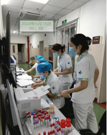 6月14日下午五点四十五分,感染科重病室小夜班护士张宁宁准点接班,得知重2床病人李某在医生陪同下外出做检查未归,像往常一样,完成床旁交接班后,她开始自己的工作。突然,一阵急切的电话铃声响起,拿起电话被告知,重2床病人在检查途中发生病情变化,紧急送往急诊科进行抢救,接到电话,张护士跟住院总闫涛涛医生立即前往急诊科,对患者进行抢救,采取紧急情况下经鼻气管插管。 同时,与病魔抗争的生死时速依旧在感染科上演着。由延安某医院转入我科1楼的患者潘某,于当晚20点15左右,发生病情变化,血氧饱和度急剧下降,无创呼吸机支持无效的情况下,当日值班二线陈红梅副主任医师迅速做出反应,将患者转入具备抢救条件的3楼重病室为患者进行气管插管,1楼小夜班护士陈欣茹协助转运患者至3楼,同时配合患者的抢救工作。面对两名患者在医院的两个不同地方同时气管插管的突发情况,三楼外围小夜班护士李晓春立即上报主管护士长郑鸽之,郑护士长迅速做出应急预案,抽调病情相对稳定的2楼小夜班护士徐少妍援助重病室,由跨夜班护士刘菲、王永利坚守1楼和2楼病房,并通知备班护士孙亚芳立即赶往病房支援。同时,三楼外围小夜班护士李晓春与跨夜班护士王燕在保质保量完成自己工作的同时,对重3床的抢救工作进行协助,成功插管后,病人的血氧饱和度仍然无法回升,随即,朱丽医生立刻为患者实行了床旁气管镜检查,终于,在全体医护人员的不懈努力下,病人的血氧饱和度上升至95%以上。当晚23点,张护士与闫医生陪同另一名抢救成功的患者李某回到感染科病房。