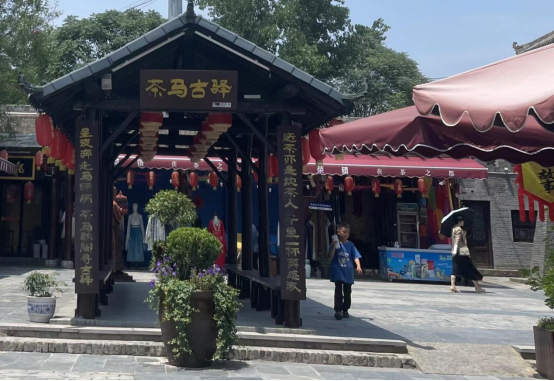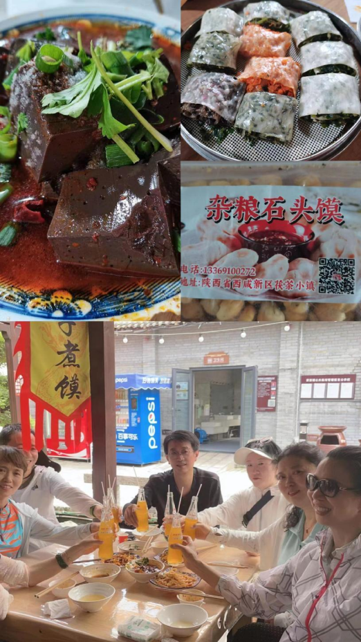 采摘结束,我们又来到茯茶小镇午餐游玩。茯茶镇位于陕西省西咸新区泾河新城茶马大道与高泾中路交汇处;以泾阳本地特产"茯茶"而命名的仿古小镇,充满关中特色的数种美食占居了街道两边。在这里,将"吃"放在首位,这是比什么都重要的事情;除了有名的甑糕之外,羊肉泡馍、肉夹馍、凉皮、孜卷等陕西美食应有尽有,打造了以茯茶文化为主题,集吃、住、游、娱、购为一体的关中民俗小吃街,老板均为当地人,日子过得悠闲自得。