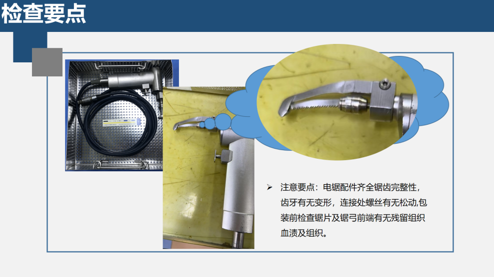 讲座正式开始,杨哲老师首先为大家介绍了心脏的结构及其主要功能,她通过视频的方式生动形象的展示了心脏各部位的构造及原理,使大家更加深入的了解了心脏这一人体核心器官。紧接着便是第二部分内容,对心脏器械的配置原则进行详细的讲解。针对心脏器械种类繁多这一情况,杨哲老师根据应用手术的不同将器械分为了三大类,分别为架桥器械、微创器械以及大血管器械。本次授课内容主要针对架桥手术器械,她将架桥手术中常用的专科器械进行了梳理,同时针对易混淆的器械着重进行了讲解。例如架桥器械16件相对于14件多了1个秃针头和冠状动脉牵开器,在清洗回收过程中应当注意清点,以免造成混淆。第三部分内容则是对架桥手术过程中各类器械的使用场景进行了介绍,通过手术视频的演示使大家可以清楚明了的了解各器械在手术过程中所发挥的作用,同时清楚认识到每件器械的功能端所在,而该部位也是器械处理过程中需要特别“关照”的地方。最后一部分内容则是针对大家在日常清洗检查包装过程中容易疏忽的地方以及易混淆点进行剖析。例如针对电锯类器械在处理过程中应注意锯片的检查,看是否存在变形、缺损等情况;在进行开胸器装配过程中一定要注意手柄的安装方向,避免因为装反而导致术中无法正常使用。同时在现场由薛昊老师为大家演示了开胸器的安装方式,强调了安装过程中的注意事项。本次讲座圆满结束。