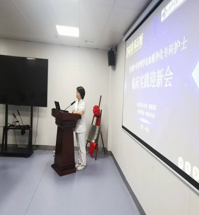 接下来刘小敏副护士长介绍了重症肾脏病.血液净化科的成长历史及现在规模结构等,解读带教计划时讲到,作为省内、京外血液净化临床实践基地,科室有着一套成熟的临床教学体系,延续专员带教模式,实践课程安排互补理论授课知识的空缺,注重临床操作,综合管理患者等内容,使学员真正意义上的将理论知识应用在临床实践中。