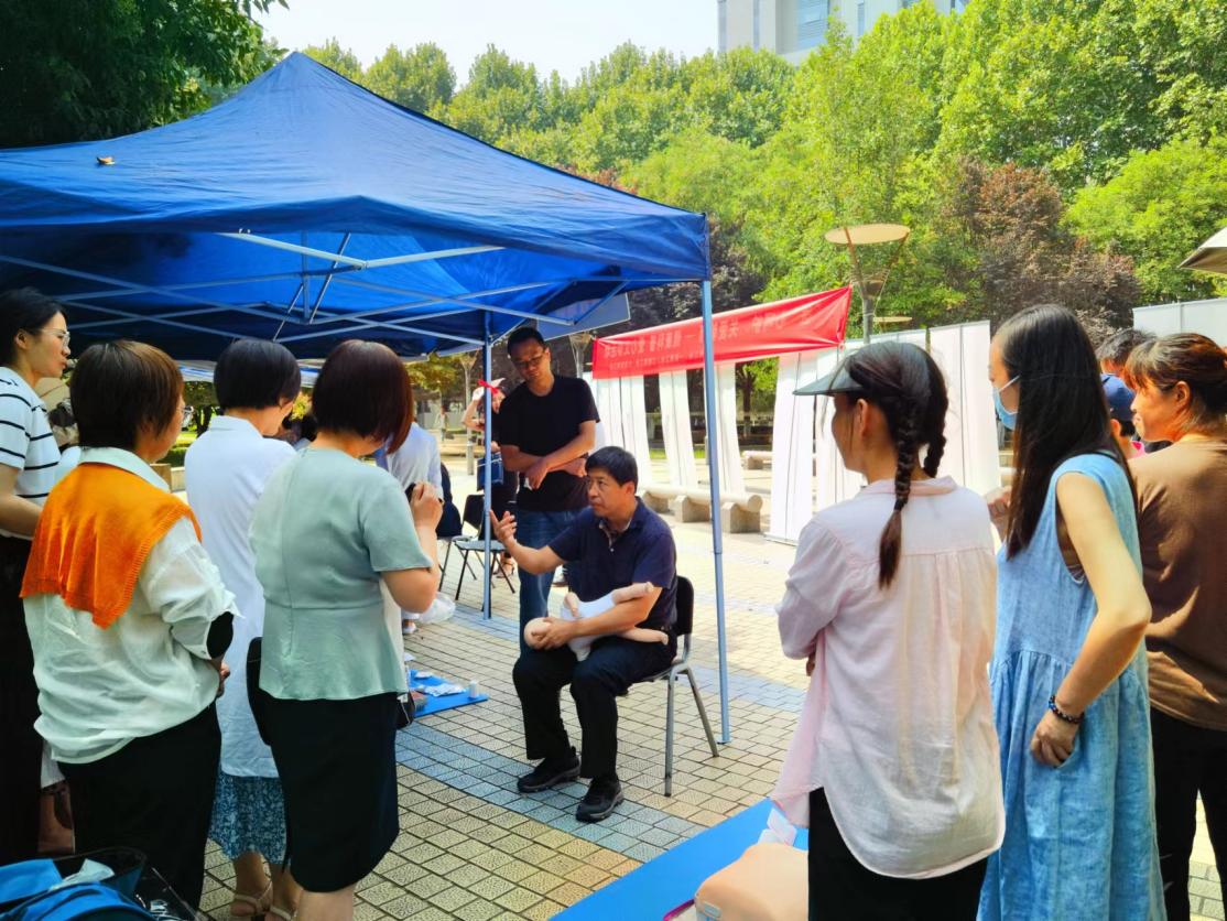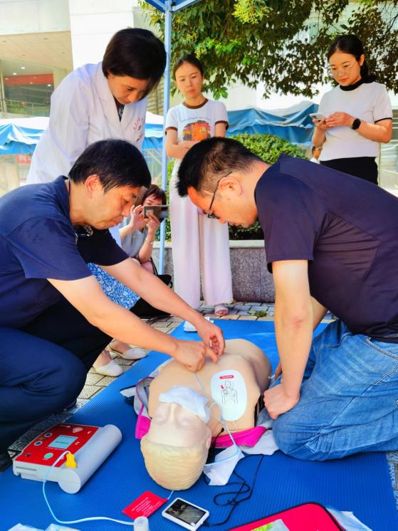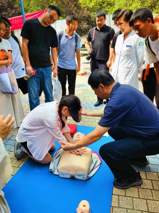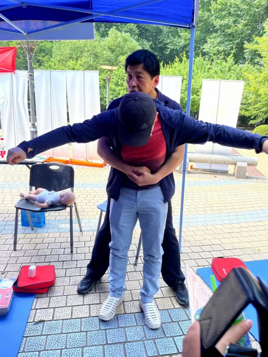 9月8日、9月11日,一附院临床技能实验中心柏宏亮主任、健康医学科艾婷教授作为义诊专家,针对心肺复苏、AED使用及海姆立克急救法三项基本急救项目进行了科普培训。