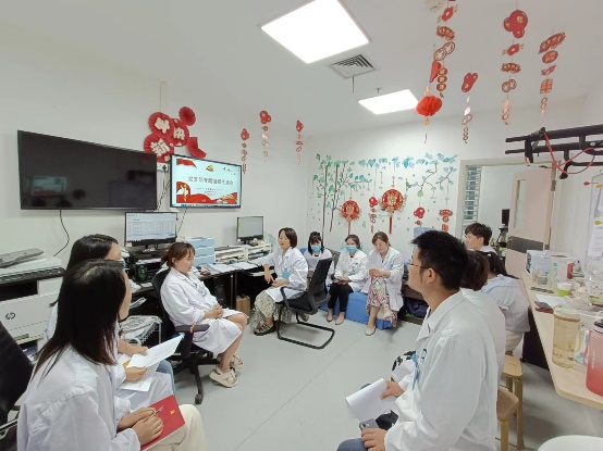 首先,党员苏茜和魏莉莉两位同志分别领学。接着,全体党员在集体学习、个人自学的基础上,对照《意见》明确的理论学习、政治素质、能力本领、担当作为、工作作风、廉洁自律等6个方面突出问题,开展批评与自我批评。魏莉莉同志分析,自己在特药审核等政策方面还需加强学习,不应只忙于埋头干活,更要善于总结,勤于思考;孙姝玲同志介绍创新工作室进展情况,鼓励大家积极参与; 党员同志结合岗位职责和履职尽责情况,纷纷提出今后的工作中仍需加强业务学习,增强业务水平,提高自身政治站位,为医院高质量发展、国家医学中心创建等中心工作贡献力量。