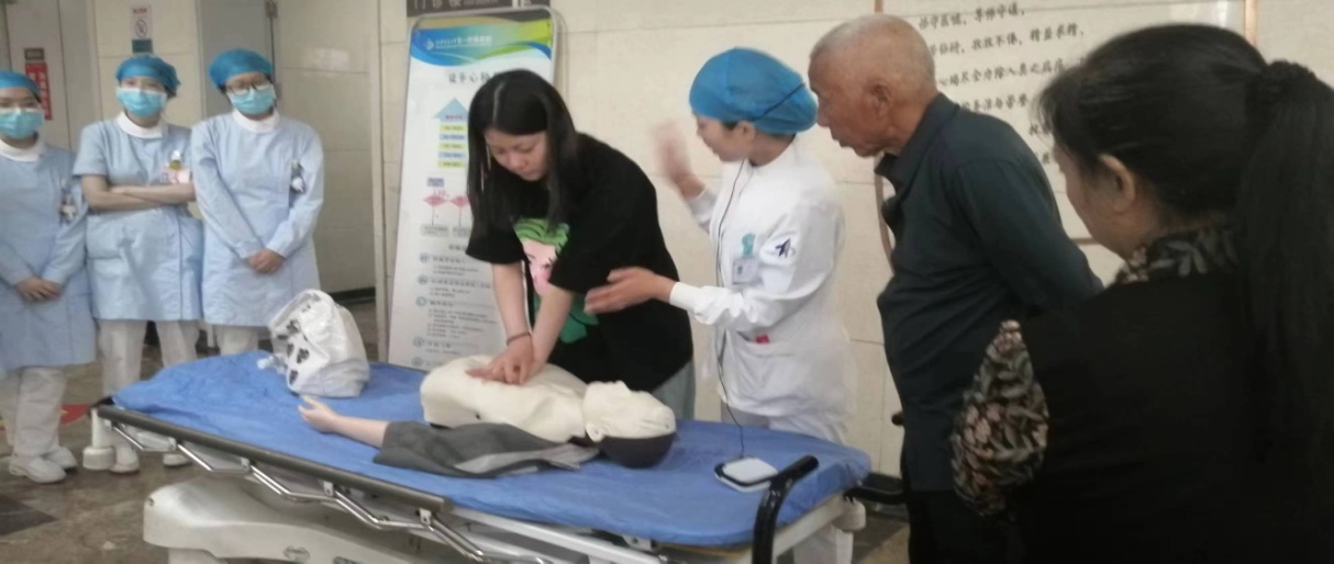 演示结束,她们号召患者和家属到模拟人身上练习操作,手把手帮他们纠正误区,传授标准的操作手法,群众们热情高涨,一个个排队学习,纷纷称赞我们的科普实用、讲解耐心。
