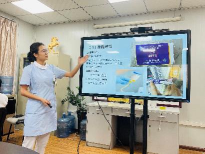 操作考核和理论考核:每一项操作都有老师示范讲解,同学们空闲时间练习,包括呼吸功能锻炼、雾化吸入、吸氧、静脉输液、肌肉注射、皮下注射、动脉采血、静脉采血、更换胸腔闭式引流瓶等。考核方式是以案例形式让同学自主判断应该进行哪项操作,锻炼同学的应变能力。理论考核是由总带教老师出题,有笔试及护世界答题两部分,知识点涵盖了护理学基础知识、胸外科疾病护理相关知识等重要内容。