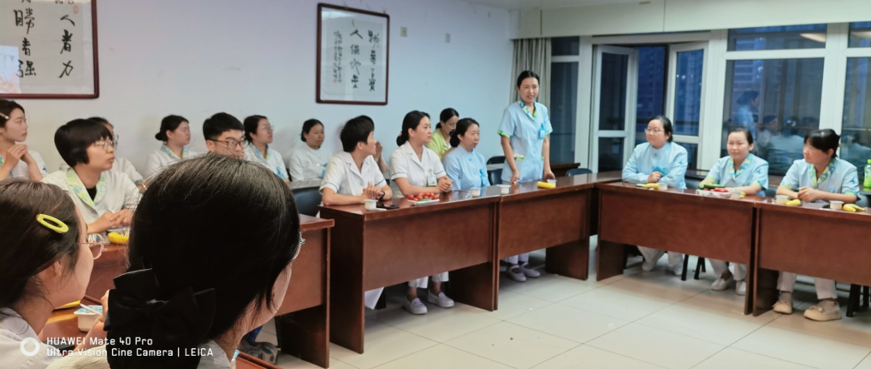 活动开始,张丽及朱姣两位护士长对新人加入消化内科护理大家庭表示热烈的欢迎,并与各位进行了亲切交流。接下来各位新人做了简短的自我介绍,也让大家对彼此有了初步的了解。崔荣主管护理师向轮转护士讲解了培训计划,要求在临床护理工作中带教老师认真做好传帮带,各位小伙伴们严格要求自己,不断学习,不断进步,做有“温度”的护理人。陈旭东主管护理师前期就进修护士的进修需求、进修目的、返院后工作重点做了了解,制定了针对性的进修计划,也在迎新会上与进修老师们进行了沟通交流。