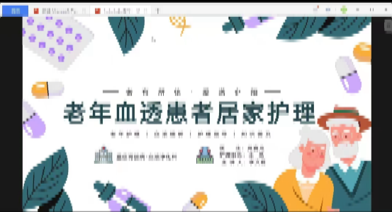 随着人口老龄化的社会现状日趋显著以及透析技术的日益发展,我国的透析老龄患者占比也是节节攀升,随之老龄患者的透析问题及各种易发的并发症越来越受到社会各界的关注。因此此次的健康教育主题则围绕的就是老年透析患者的居家护理。
