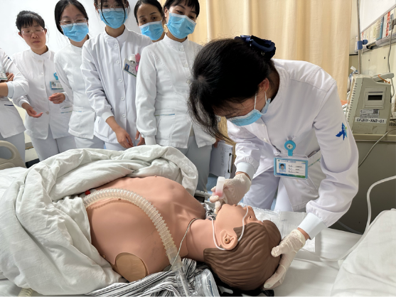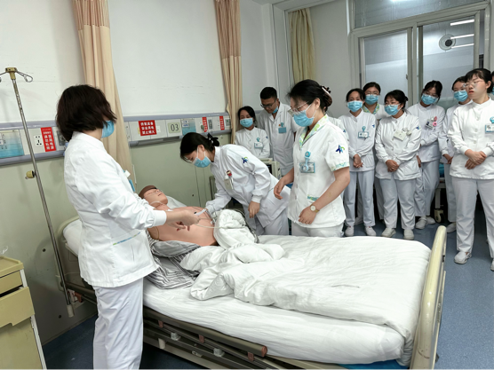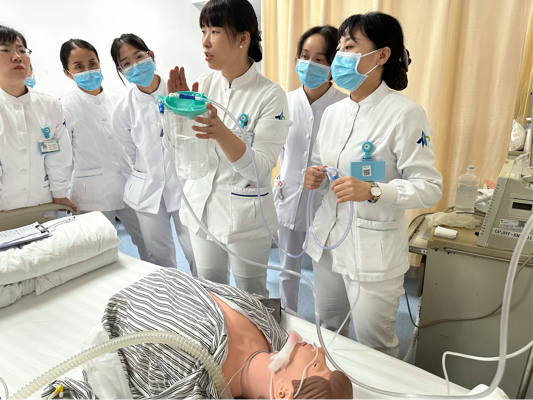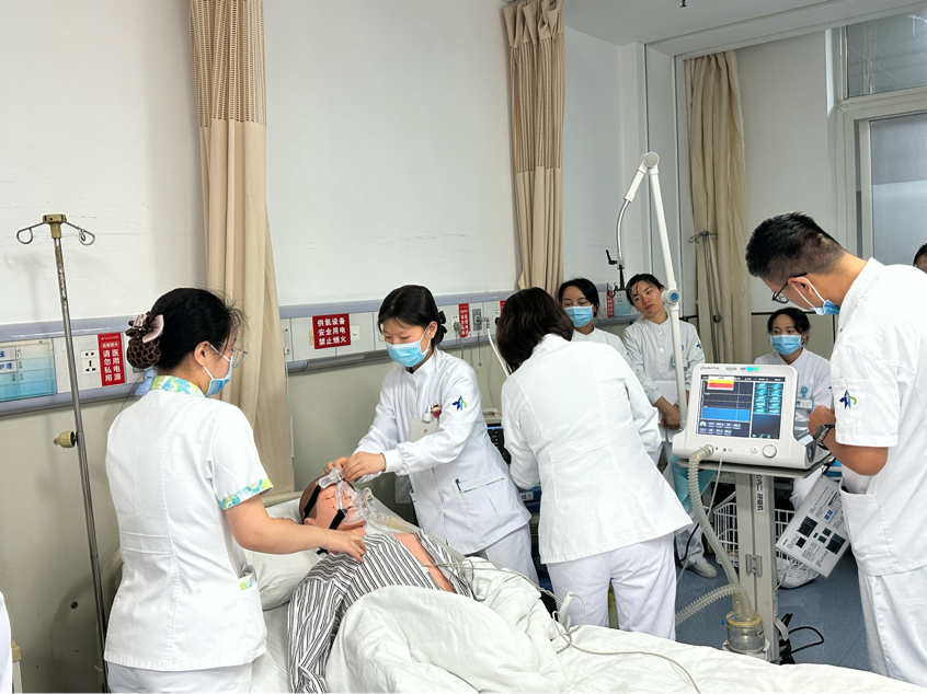 本次演练采用现场情景模拟的形式开展,共设有3个情景,第一个情景由蔡翔老师带队,主要演练了一位冠心病患者突发左心衰竭,需要用无创呼吸机辅助呼吸的案例;第二个情景由樊亚宁老师带队,主要演练了一位患者血压低,发生窒息的案例;第三个情景由肖玲老师带队,主要演练了一位患者发生跌倒坠床后的应急处理案例;三组老师分别按照预案扮演着不同角色,并针对设定的场景进行处置操作演示,演练过程紧张有序,医护各司其职,配合默契,充分展现了护士敏锐的观察力、机敏的反应力、良好的心理素质和精湛的护理技术,使在场人员熟悉了发生此类情况时的应对方法和流程。