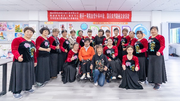 义诊结束后,我们和残联的工作人员将精心准备节目进行了展示,现场气氛热烈,场面活跃,残疾人联合会伙伴们的一曲手语《国家》、爱心人士歌唱家的一曲《我爱你中国》,让我们真真切切体会到“家是最小国,国是千万家”的含义。交大一附院血管外科.周围血管科护理团队一曲朝气蓬勃、意气风发的舞蹈,以及风雨老师为一曲慷慨激昂地诗歌朗诵,仿佛带领我们又回到了那个热情奔放又多姿多彩的时光。
