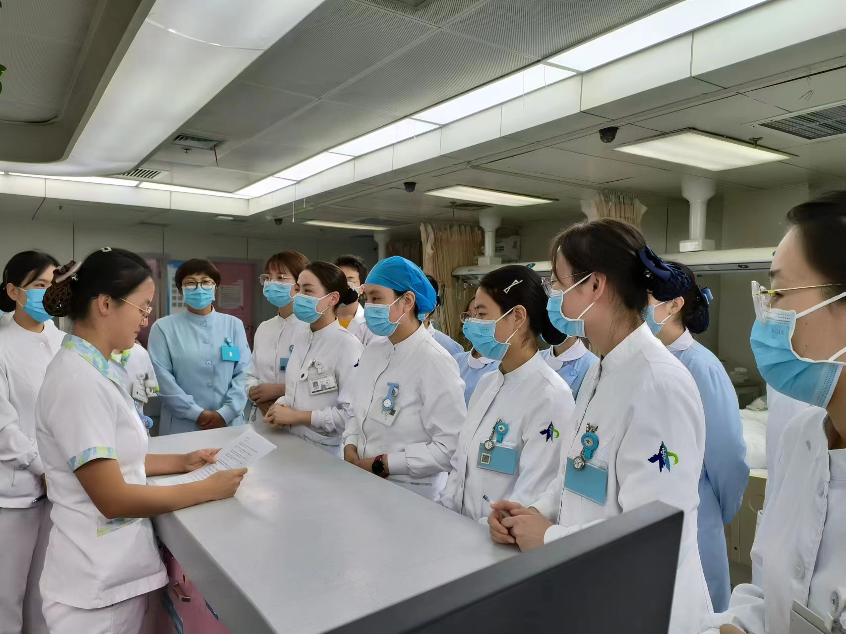 10月7日晨交班结束后,心内CCU病区全体护士在李静护士长的主持下进行了床旁培训,由田鑫鑫护理师分享了主动脉内球囊反搏(IABP)的原理及护理的相关知识。