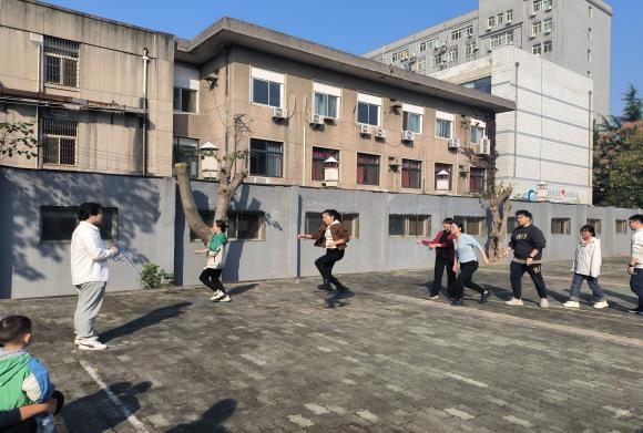 在跳大绳比赛中,两组队员挥汗如雨,使出浑身解数,经过坚持不懈的实力比拼,最终以平局结束了这一场没有硝烟的友谊赛,小朋友们也为队伍做出了贡献,拉拉队的实力不容小觑,振奋人心的呐喊为运动员们加油助威。