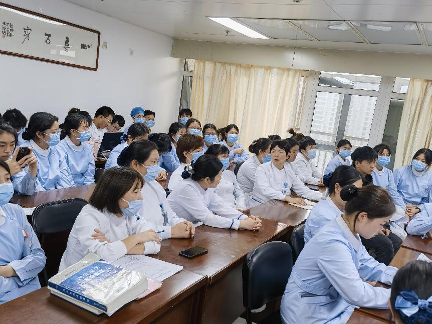 到了最热闹的讨论环节,大家各抒己见,风湿科李欣护士长提出可以对每位新入病人增设肌力评估,对病人情况更好的掌握;内分泌李蒙护士长指出对于跌倒的病人,可以增加血糖监测,排除血糖原因引起患者眩晕等不适导致跌倒。现场多轮互动,热闹非凡。