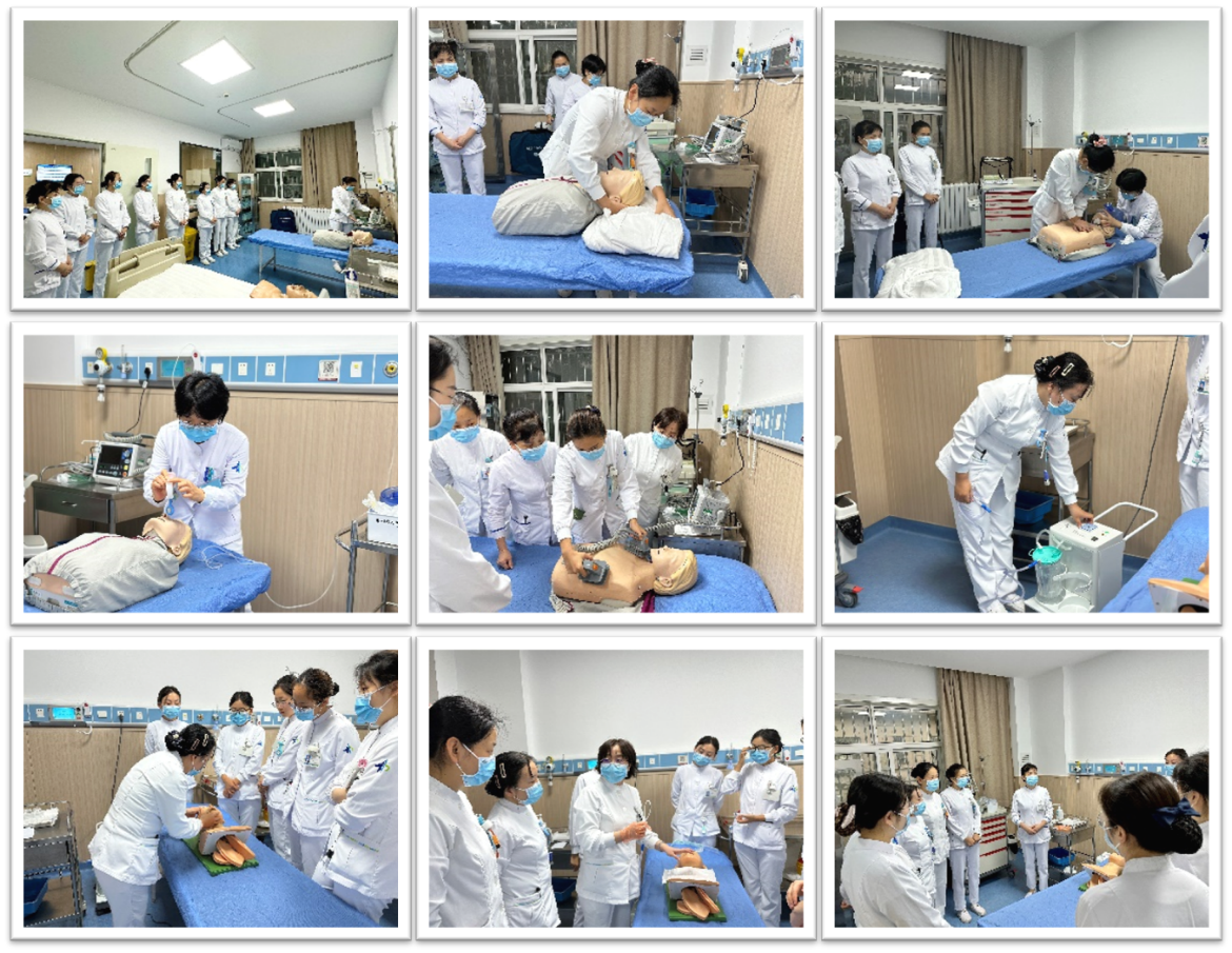 当住院患者由于各种原因引起心跳呼吸骤停时,及时准确的电除颤、心肺复苏及开放气道是最有效的急救护理措施,正确掌握此项操作尤为重要。培训开始,黄亚楠主管护理师及刘文媛主管护理师分别进行心肺复苏和开放气道的讲解,主要通过以下几个步骤进行:用物准备、评估与判断,摆放体位,胸外心脏按压、气道开放、简易呼吸器辅助通气、有效指征的判断、安置患者、以及两人如何默契配合;接着由苏青主管护师讲解非同步电除颤的评估与观察要点、操作要点以及除颤仪使用的方法和注意事项。;最后,任洋主管护理师、何涵护士进行吸痰和负压吸引操作的讲解,讲解结束后进行现场模拟演练,通过实际操作演练发现问题及时纠正,培训和练习结束后现场考核。