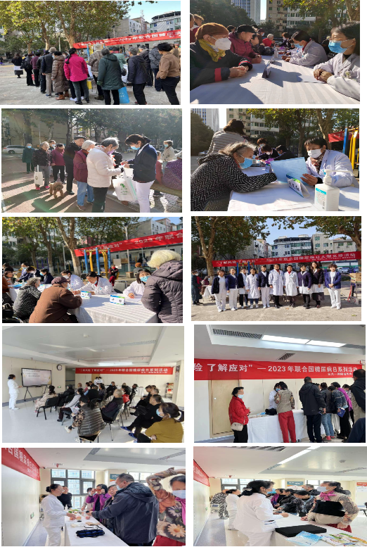11月14日是联合国糖尿病日,今年的主题是“了解风险,了解应对”,科普宣传是糖尿病预防的“社会疫苗”。早预防、早发现、早诊断、早治疗,能够减少糖尿病及其并发症的发病率,为提高群众防止糖尿病的意识和重视程度。11月13日上午老年内二科在崔巍主任,许静副主任、庞瑛护士长带领的医护团队联合公共卫生中心、离退休办公室于上午在北院家属区健身广场进行了糖尿病健康教育义诊活动,为离退休老人提供免费义诊和糖尿病防治宣传等服务。