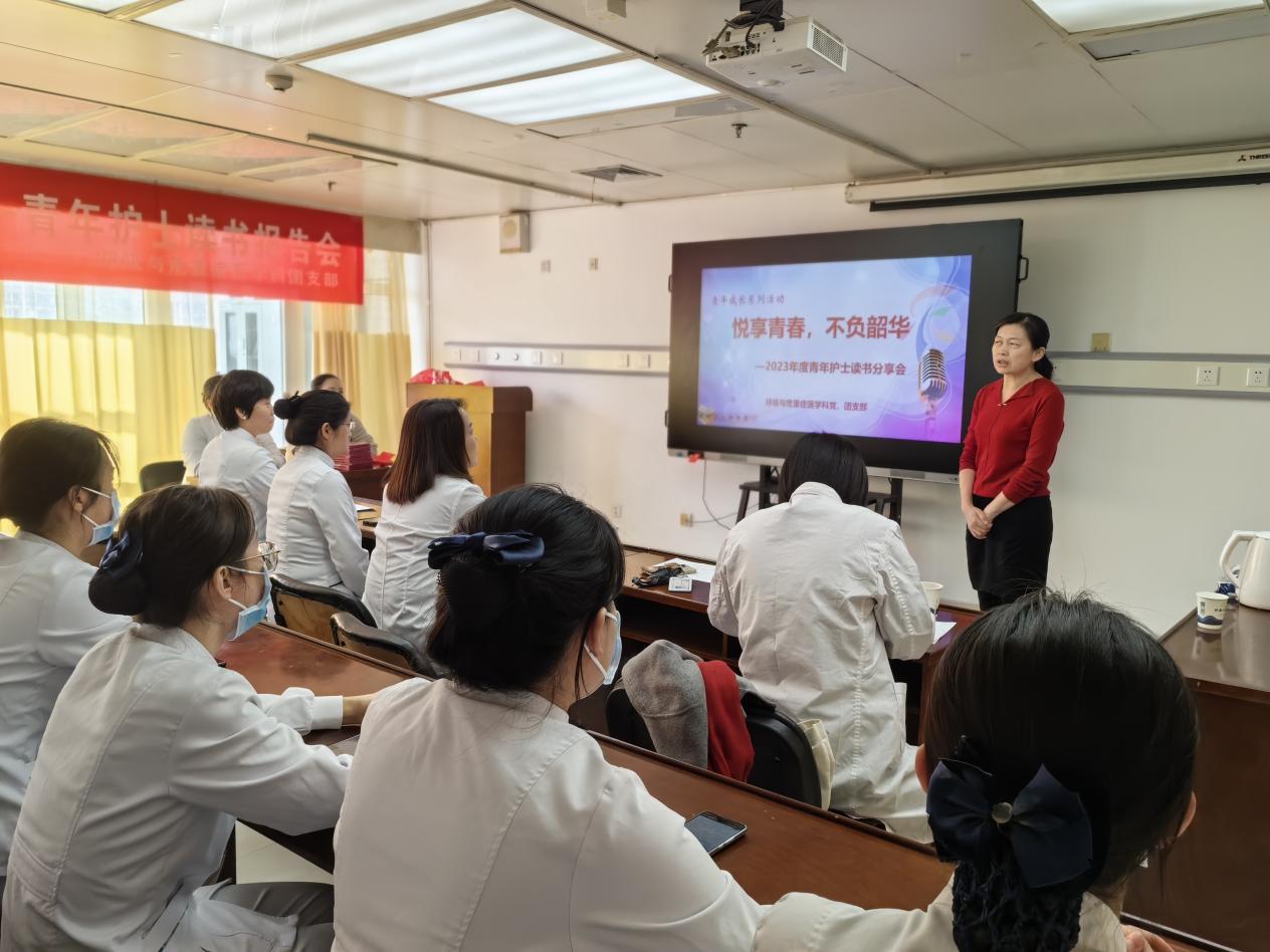 关注青年成长,助力青年成才,以创建青年文明号为契机,深入开展教育实践活动,呼吸与危重症医学科团支部于2023年11月29日下午3时在九楼中间教室举办从悦享青春、不负韶华——2023年度青年护士读书报告会,在本次活动有幸邀请到了护理部辛爱利老师,院青工部·团委主管姚丑老师,呼吸与危重症医学科党支部书记朱柏教授、组织委员李宏教授、宣传委员杜娟副护士长,科室冯思芳护士长,科室总带教老师、新入职护士教学组长等作为本次读书报告会的评委。活动由团支部书记王沙沙主持。