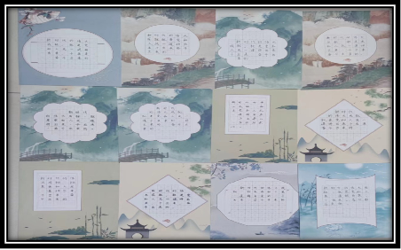 活动现场参赛者们一个个聚精会神专注于自己的作品,时间转瞬即逝,一篇篇精美的文字跃然纸上,一幅幅生动的剪纸栩栩如生。大家的作品被整齐展列在桌面上。