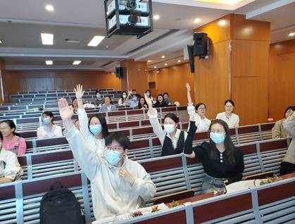 随后,党史问答和红歌竞猜环节开展得如火如荼。同学们积极踊跃抢答,在回答问题的过程中,学工办的老师引领着同学们再一次延伸和重温了党史知识,感受革命先辈们的奋斗历程,同学们对于党史知识的记忆更加深刻!在红歌竞猜中,同学们一起唱出红色歌曲,一起合唱《歌唱祖国》,寓教于乐,整个会场气氛轻松而又热情激扬。