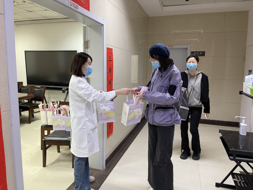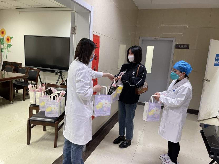 草长莺飞、春花曼舞。又到一年春光烂漫时,为庆祝第113个“三八”国际妇女节到来,营造温暖快乐的节日氛围,增加职工幸福感、获得感,3月8日,超声医学科便为各位职工准备了暖心礼物,由宋艳副主任代表科室领导为全体职工、进修医生及学生送上鲜花及节日的祝福。