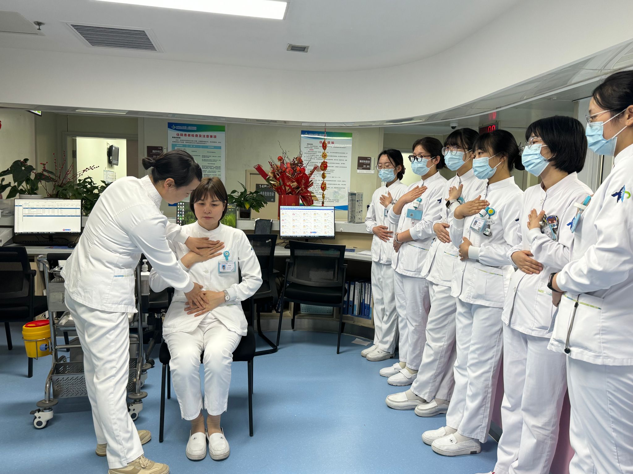 陈老师先讲解了呼吸功能锻炼的适应症与禁忌症,接着演示了各项呼吸功能锻炼的方法及要点,重点讲述了我们在对患者进行功能锻炼指导时需注意的相关事项。最后,对全体护理人员进行考核,针对问题逐一指导,确保全员掌握。