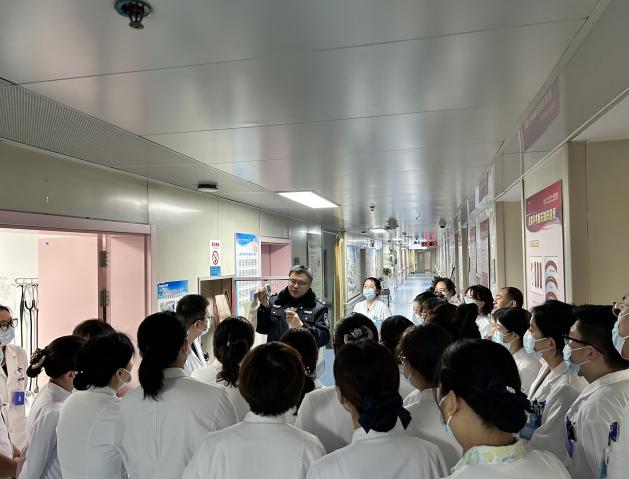 此次培训由心内科护士长刘美丽老师组织,邀请保卫科老师现场讲解防火安全知识、逃生安全知识、灭火器及消防栓的应用知识。医护学习热情高涨,现场进行了演示。