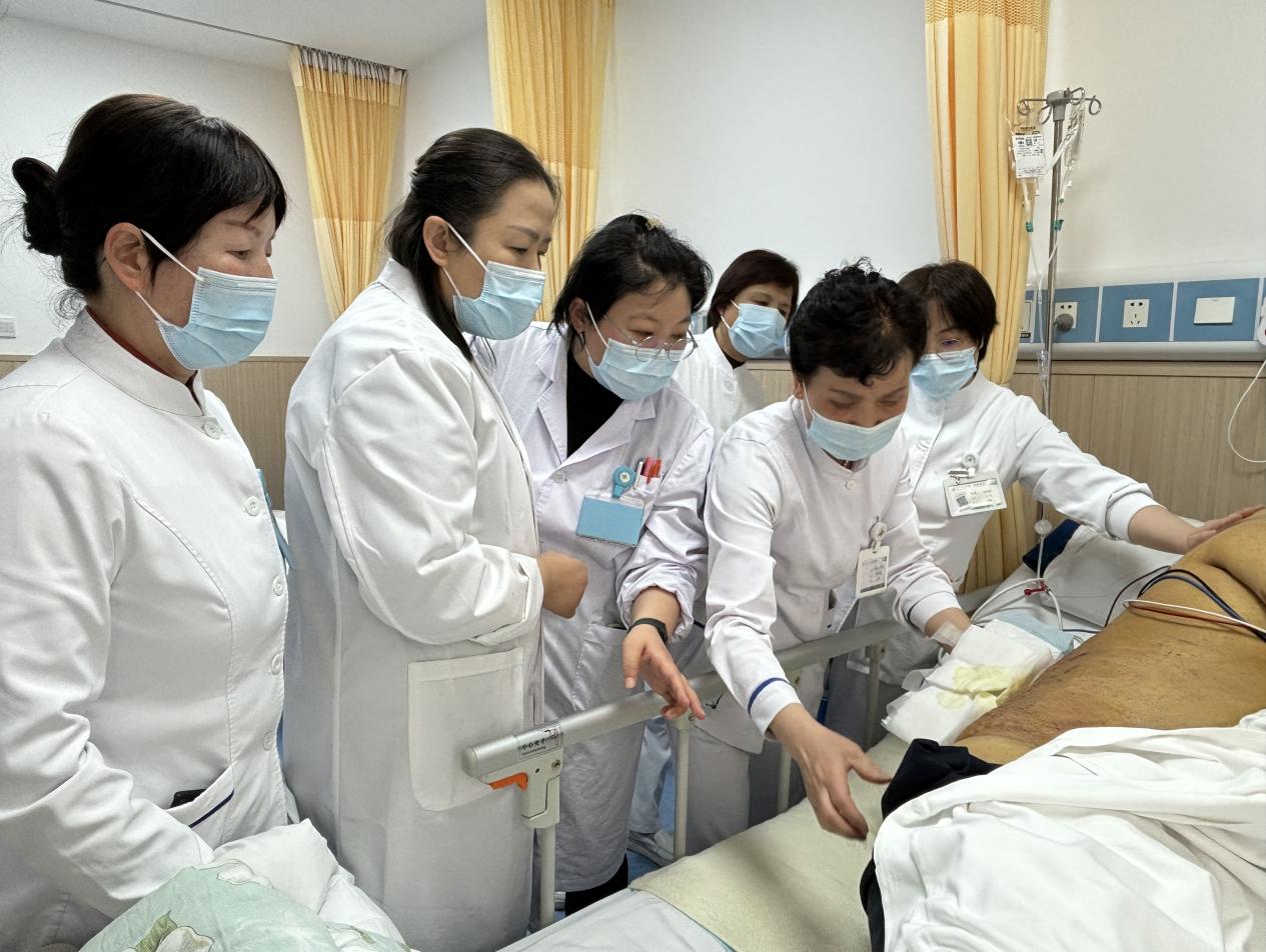 为解决疑难病例在各个护理环节中的难点和疑点,保障科室患者医疗安全,提高科室护理人员护理服务质量。肝胆外科总护士长杨勤玲老师发出邀请函。经护理部审核后,在护理部李洁琼主任的统筹安排下,伤口造口组组长乔莉娜老师、感染性疾病组组长杜粉静老师、VTE组组长周红艳老师、静脉治疗专业组副组长郝楠老师到场进行多专业护理会诊。