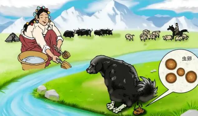 1. 传染源: 受感染的狗是最终宿主,虫卵会随着它的粪便排出,污染草地、水源、甚至它的毛发。