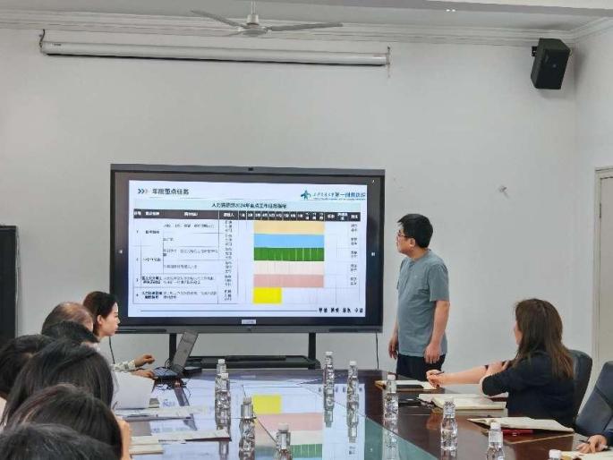 聚焦部门年度重点工作任务,人力资源部陈伟部长首先围绕提升国考相关指标、加快推进“十个一”人才目标、加大医工交叉博士后队伍建设以及完善人力资源管理制度体系四项核心工作,就任务分解、路径举措、阶段完成情况及针对存在问题进行的项目调度、分工调度情况进行了汇报。