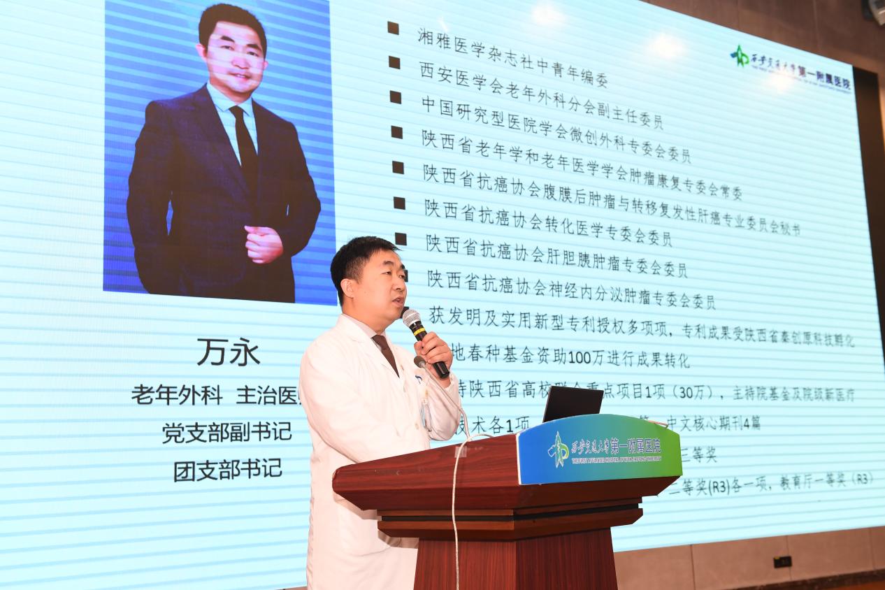 本届“青年岗位能手”、老年外科党支部副书记、团支部书记万永生动讲述了一名外科医生的成长之路,以能够在2小时内完成胰十二指肠切除术以及开展全腹部手术的专业能力,鼓励大家要刻苦钻研学习进取,拒绝在宝贵的青春岁月躺平。