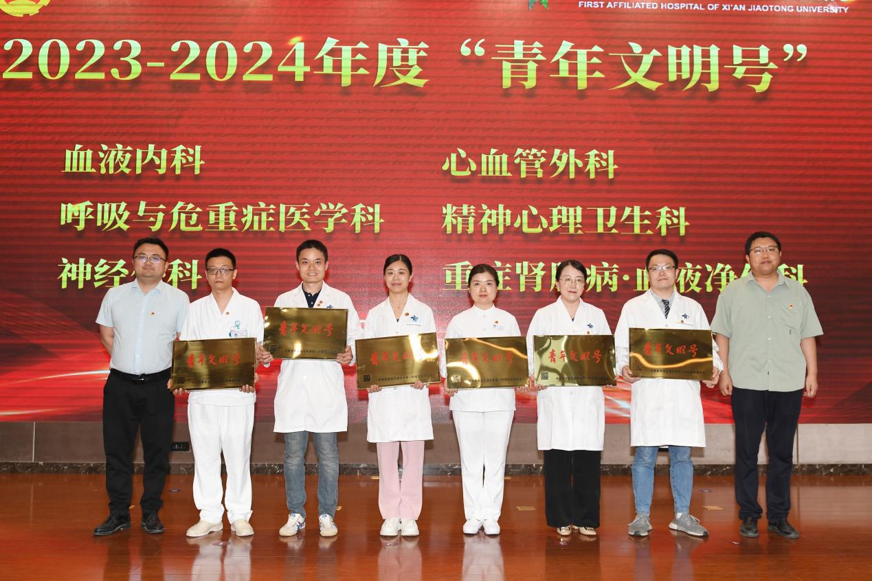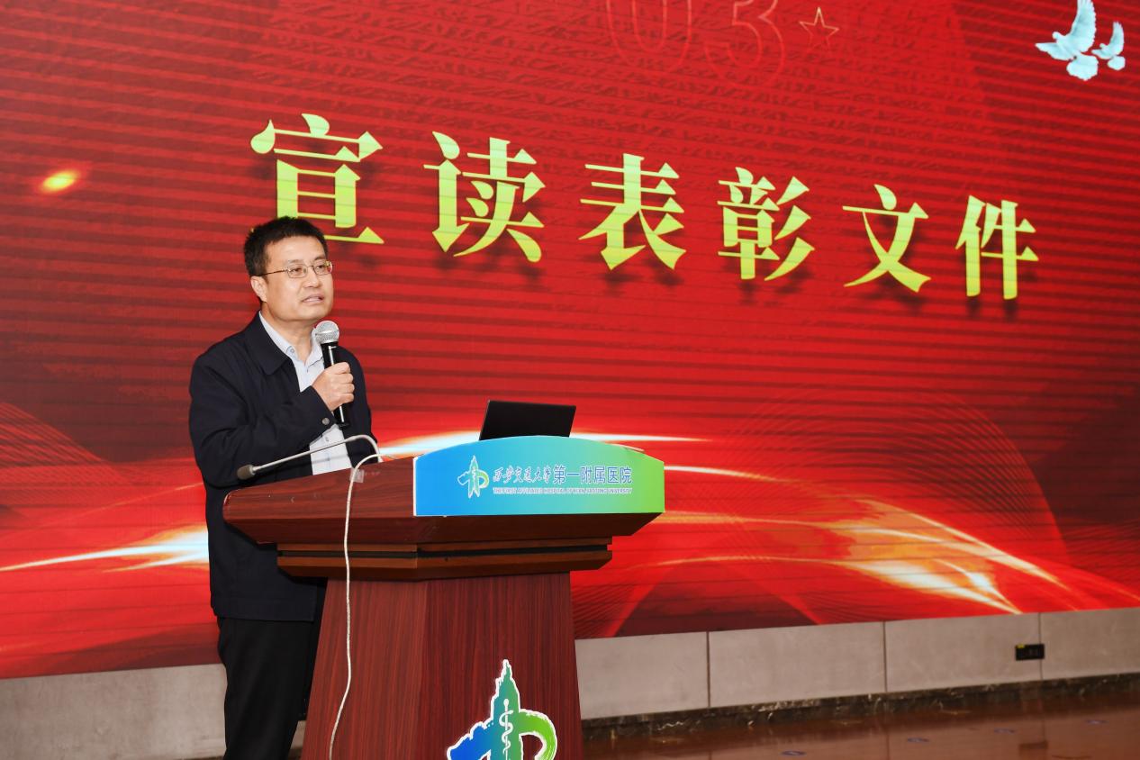 冯广林副书记宣读了《西安交通大学第一附属医院关于表彰第六届“明日之星”、首届“创建国家医学中心青年先锋”及2023-2024年度“青年文明号”“青年岗位能手”的决定》《共青团西安交通大学第一附属医院委员会关于表彰 2023-2024 年度“红旗团支部”“优秀共青团干部”和“优秀共青团员”的决定》,院党委和团委对19个凝心聚力、瞄准一流、守正创新、甘于奉献的先进集体,83位理想信念坚定、岗位业绩突出、勇于创新创造的优秀青年予以表彰和奖励。